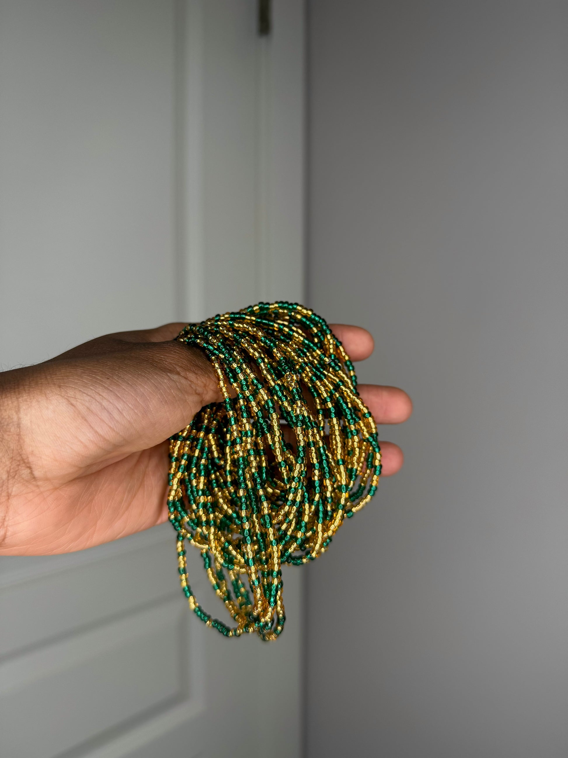 Each waist bead strand consists of 1 elastic string. When adorning them, please handle them gently to avoid the risk of breakage. While the strands are made with strong string, excessive pulling may still cause them to snap.
