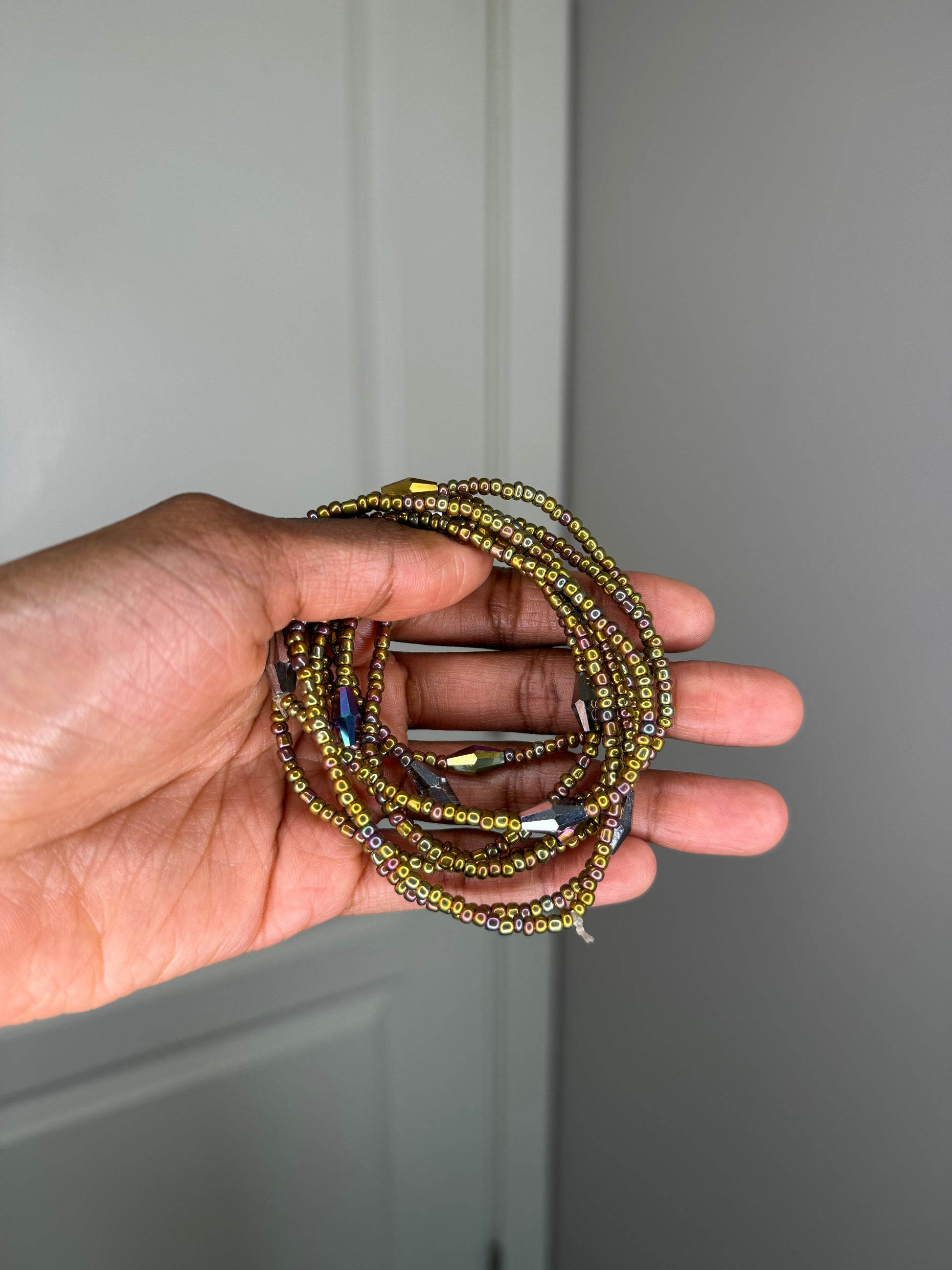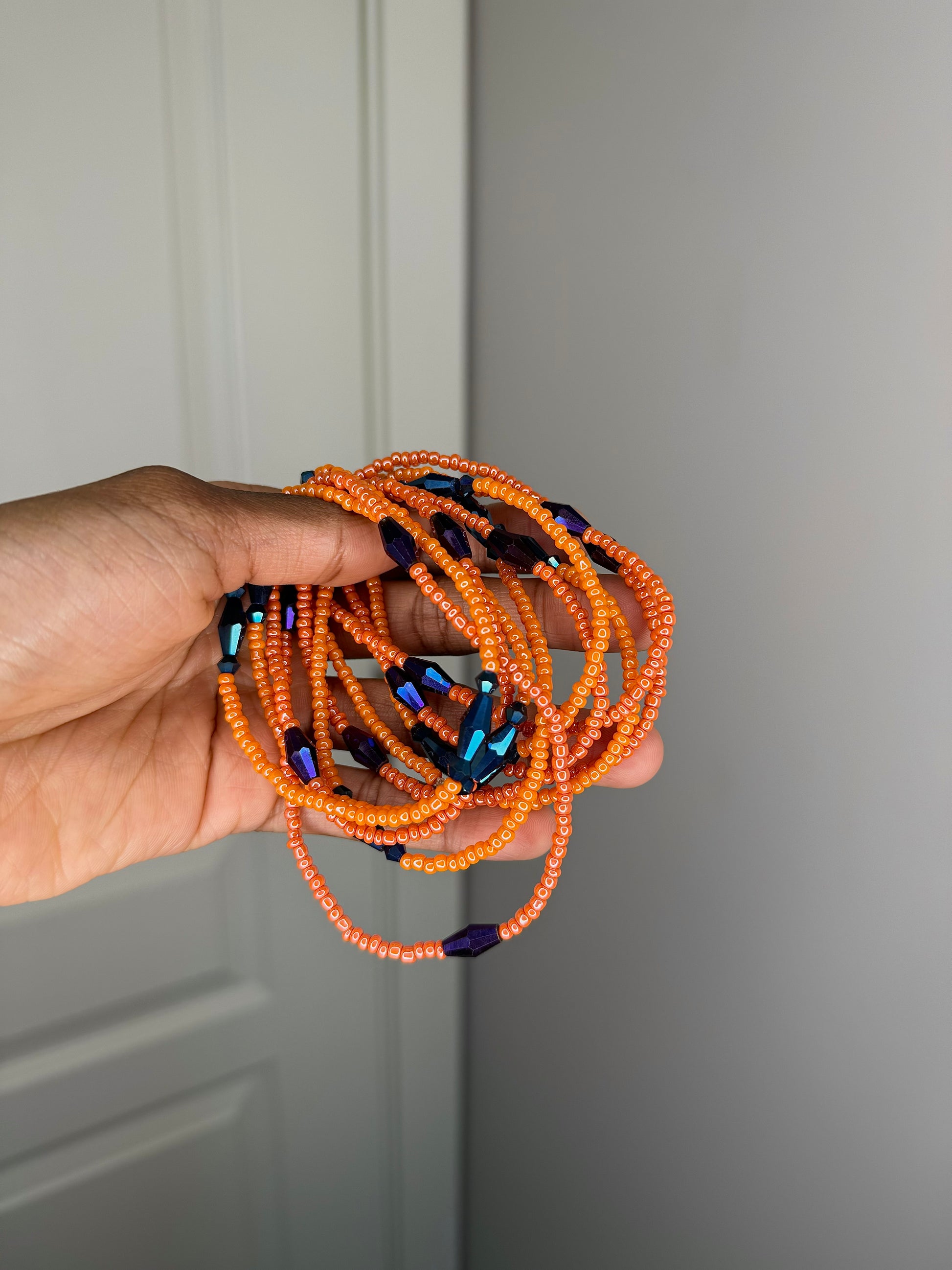 Each waist bead strand consists of 1 elastic string. When adorning them, please handle them gently to avoid the risk of breakage. While the strands are made with strong string, excessive pulling may still cause them to snap.