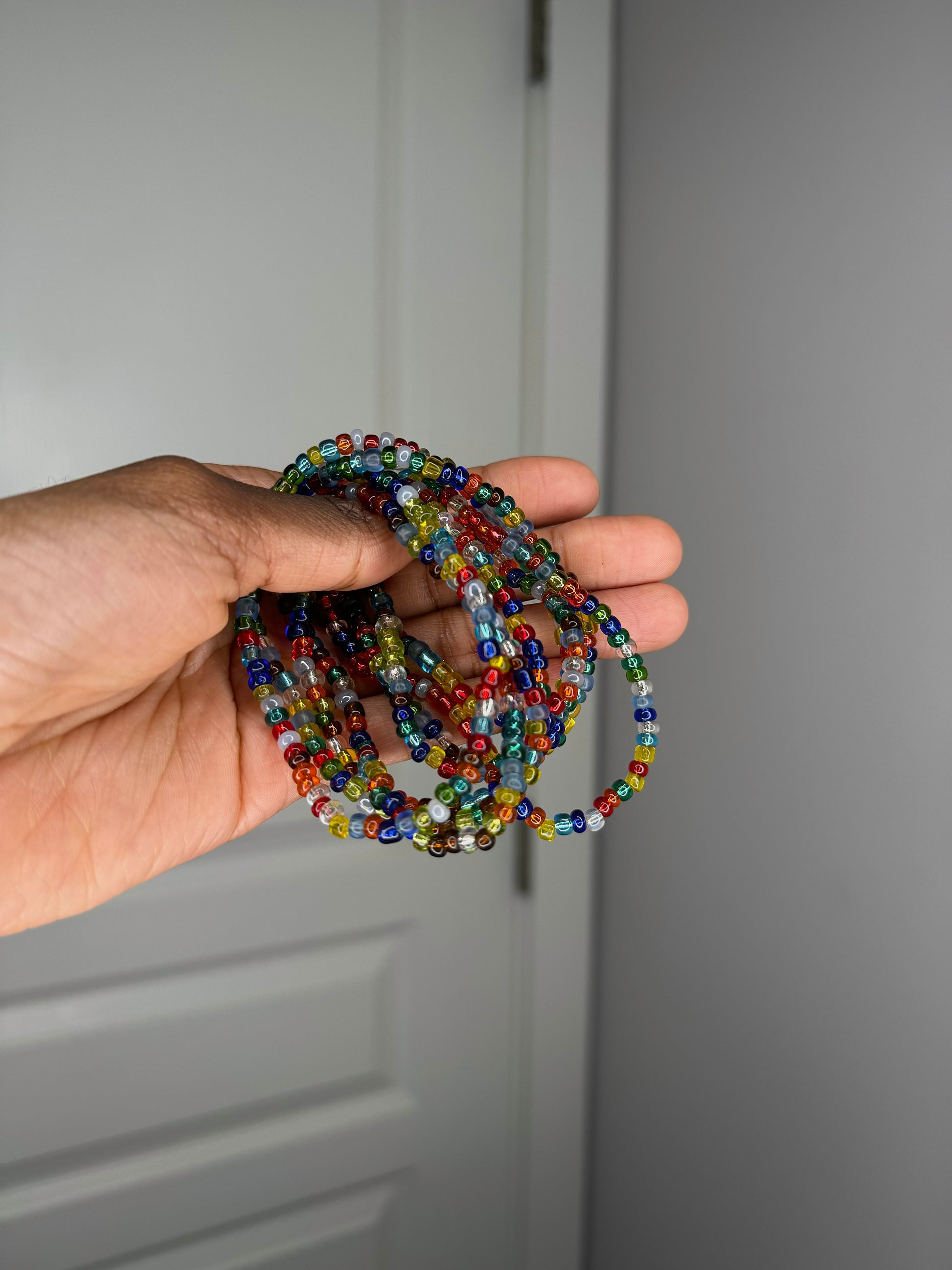 Each waist bead strand consists of 1 elastic string. When adorning them, please handle them gently to avoid the risk of breakage. While the strands are made with strong string, excessive pulling may still cause them to snap.